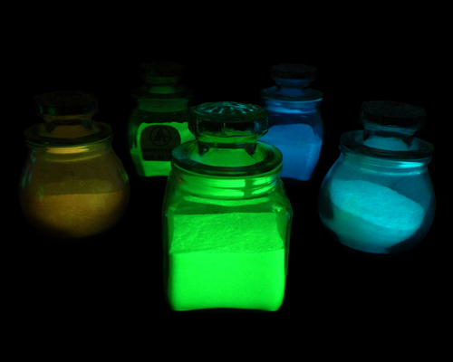 長效型夜光粉末,夜光粉可以依照顧客需求選購,可以用於噴塗、印刷、造粒,夜光餘暉時間8小時以上。夜光發光顏色有綠色及藍色兩款。。
