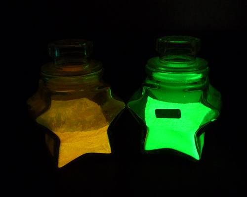 長效型夜光粉末,夜光粉可以依照顧客需求選購,可以用於噴塗、印刷、造粒,夜光餘暉時間8小時以上。夜光發光顏色有綠色及藍色兩款。